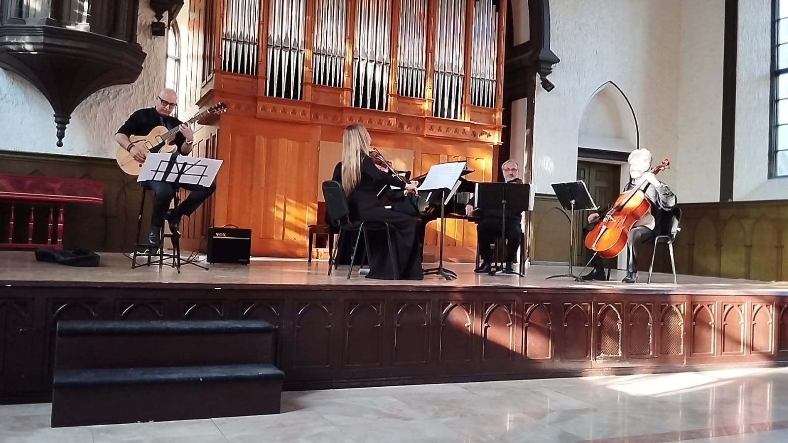 “The concert also featured my work Cantico per Corbetta For Soprano, Quartet and Piano. Soprano Farida Mamedova performed the work superbly. The concert continued with my variation on Pink Floyd’s song “Hey You”, followed by the premiere of Stefano Muscaritolo’s work “Keep climbing”, where he performed as a soloist on electric guitar,” she added.